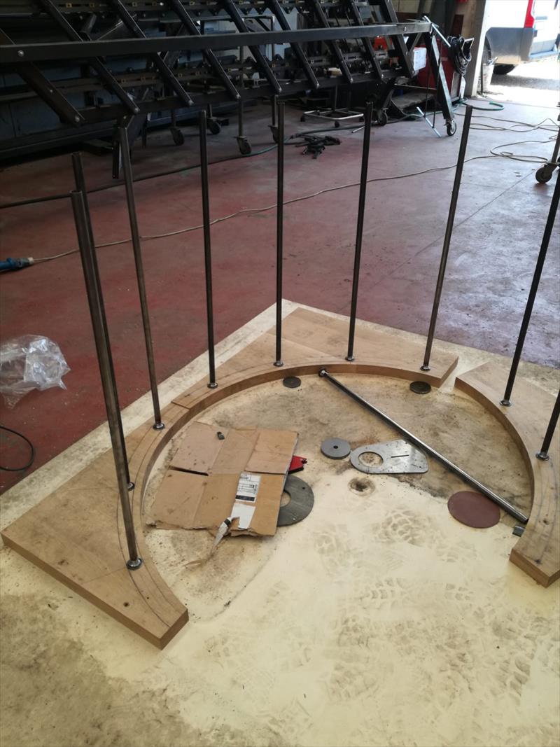 Scala a chiocciola realizzata su misura con struttura e corrimano in ferro bruciato e gradini in legno piallato e lavorato a mano. Progettazione realizzazione e posa in opera. Casa antica in Umbria.